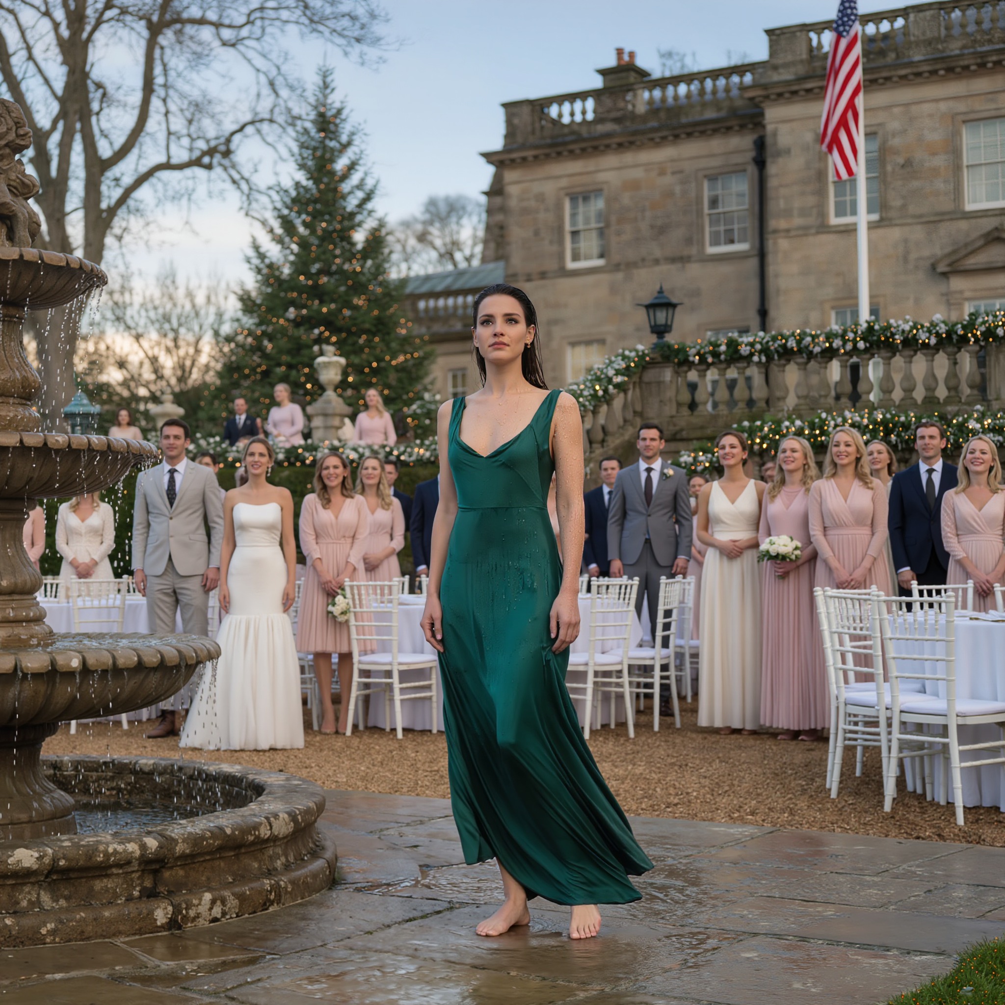 Stałem przy fontannie, a wokół mnie wirował śmiech gości.