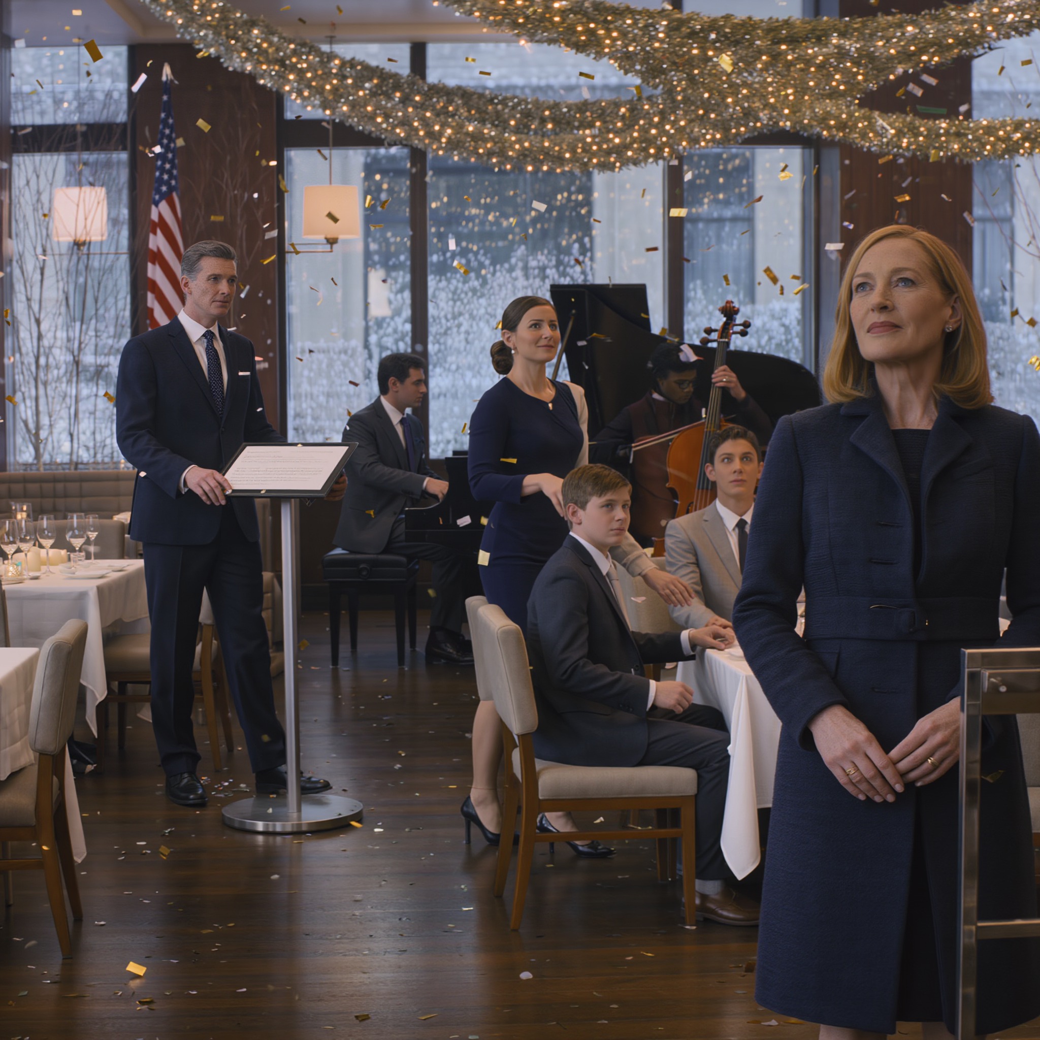 Daniel próbował schować się za serwetką, ale było za późno. Victoria zakryła twarz dłońmi, szepcząc rozpaczliwie, że to zniszczy jej reputację towarzyską. Mark po prostu stał tam sparaliżowany, jak zawsze, gdy sprawy się komplikowały.