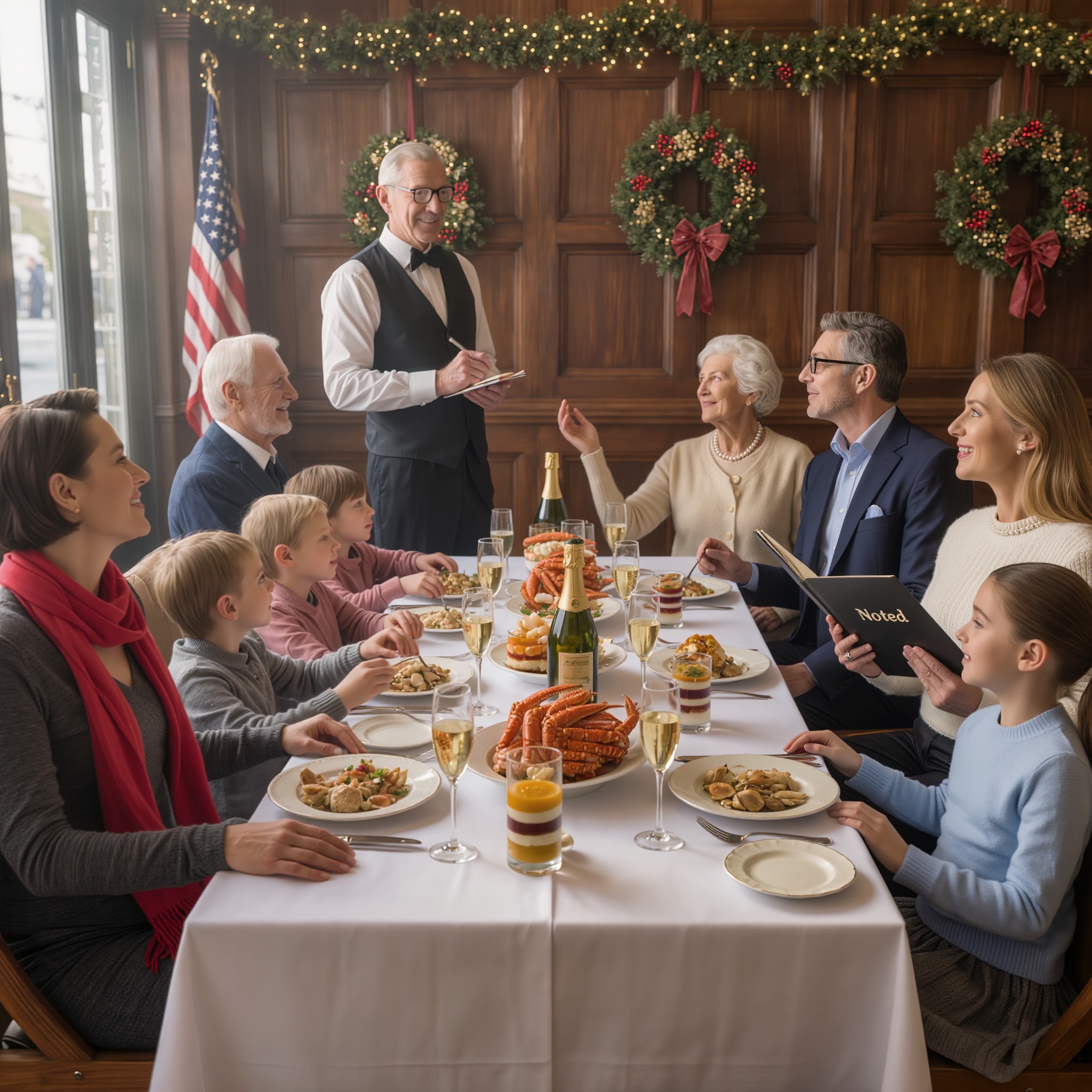Dotarliśmy do Capital Grille około siódmej wieczorem. Lokal był udekorowany na święta: sznury ciepłych, złotych światełek, świeże girlandy z wiecznie zielonych kwiatów i delikatny zapach cynamonu z baru. W jadalni rozbrzmiewał śmiech i brzęk kieliszków, wszyscy byli elegancko ubrani na tę okazję.