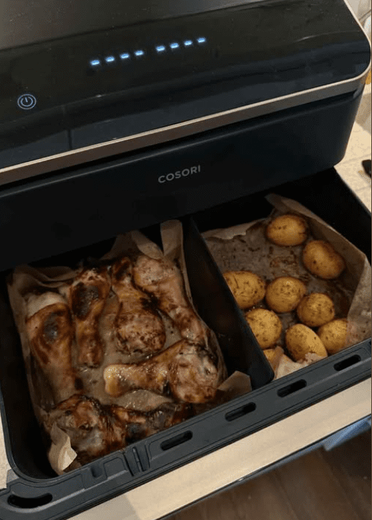 Nóżki z kurczaka w sosie miodowo-musztardowym z opiekanymi ziemniakami to szybki, domowy obiad o wyrazistym aromacie i pięknie skarmelizowanej skórce. Sos na bazie musztardy miodowej, miodu, cytryny i czosnku otula mięso, dzięki czemu podczas pieczenia staje się ono soczyste i delikatne. Dodatek ugotowanych wcześniej ziemniaczków, które na końcu trafiają do airfryera, pozwala uzyskać idealnie rumiane, chrupiące wnętrze całego dania.