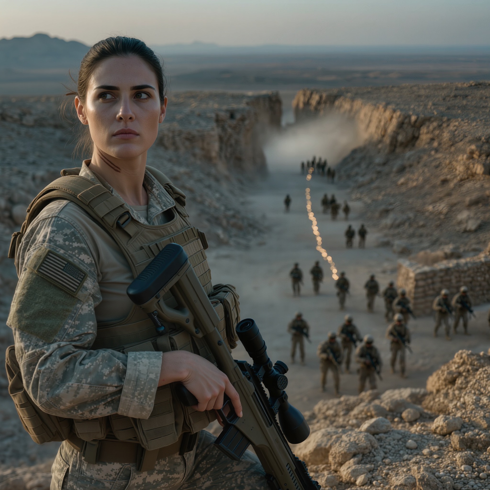 „Do diabła, Vance” – warknął Kalin, skulony za nagrzaną słońcem skałą, podczas gdy pociski smugowe wyżłobiły zielone linie w nocy tuż nad nami. „Nie potrzebuję klików. Potrzebuję rozmowy. Skąd strzelają? Z sektora. Z dystansu”.