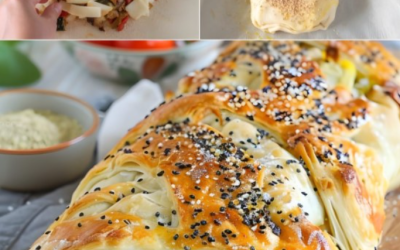Nadziewany rogalik z ciasta francuskiego z warzywami i serem 🧀🥦 🥐🌿 Chrupiace, złociste rogaliki z ciasta francuskiego, pełne smakowitych warzyw…