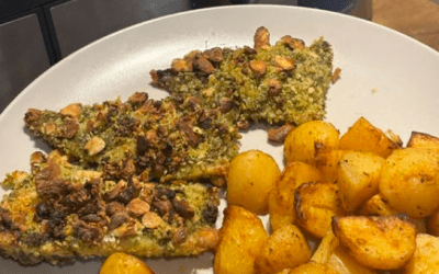 Dorsz w orzechowej panierce z zielonym pesto
