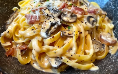 Tagliatelle carbonara z grzybami – kremowy klasyk