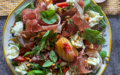 Sałatka z grillowanymi brzoskwiniami, mozzarellą, prosciutto i bazylią – idealny smak lata