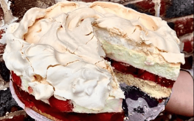 Sernik na zimno z truskawkową galaretką i chrupiącą bezą – lekki, elegancki i przepyszny