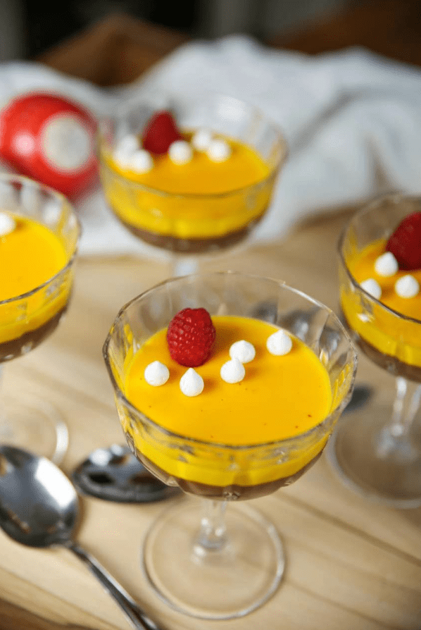 Połączenie gorzkiej czekolady i szafranu może wydawać się nietypowe, ale w rzeczywistości te dwa smaki uzupełniają się idealnie. Głęboka, lekko gorzka nuta czekolady kontrastuje z subtelną, kwiatowo-korzenną nutą szafranu. Dodatkowo deser przygotowany w formie warstw prezentuje się niezwykle efektownie i doskonale sprawdzi się na specjalne okazje.