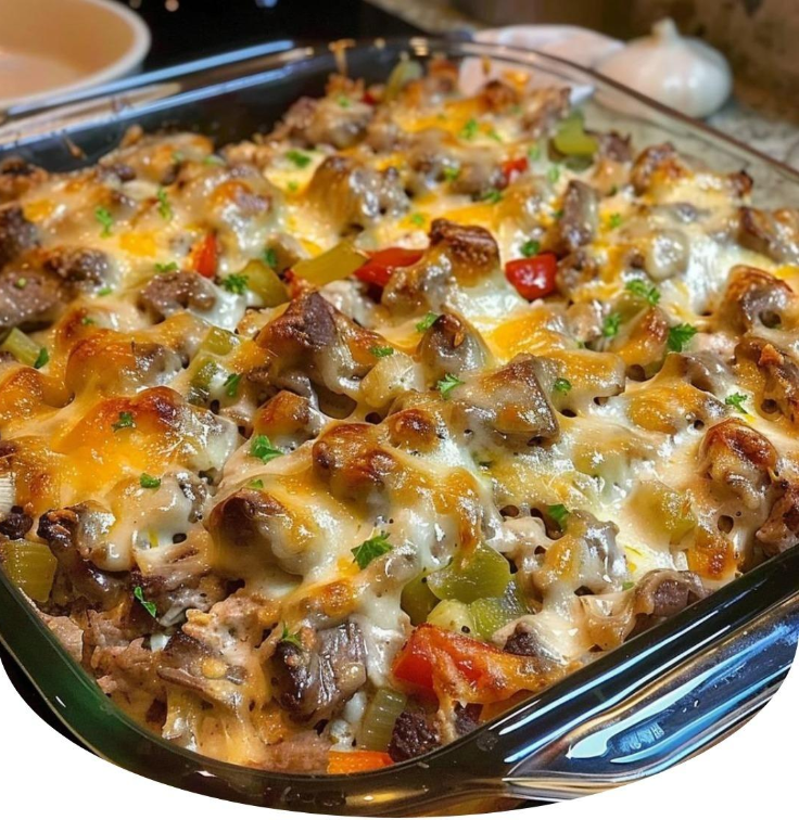 Jeśli uwielbiasz kultową kanapkę Philly cheesesteak, ale marzysz o wygodniejszej, prostszej do przygotowania wersji dla całej rodziny lub grupy gości, ta zapiekanka jest dla Ciebie idealna! Łączy wszystko to, co najlepsze w klasycznym cheesesteaku — delikatną wołowinę, ciągnący się ser, podsmażone papryki i cebulę — w jednym dużym, łatwym do podania daniu. To cudowne comfort food, które sprawdzi się podczas rodzinnej kolacji, spotkania ze znajomymi lub wieczoru przed telewizorem.