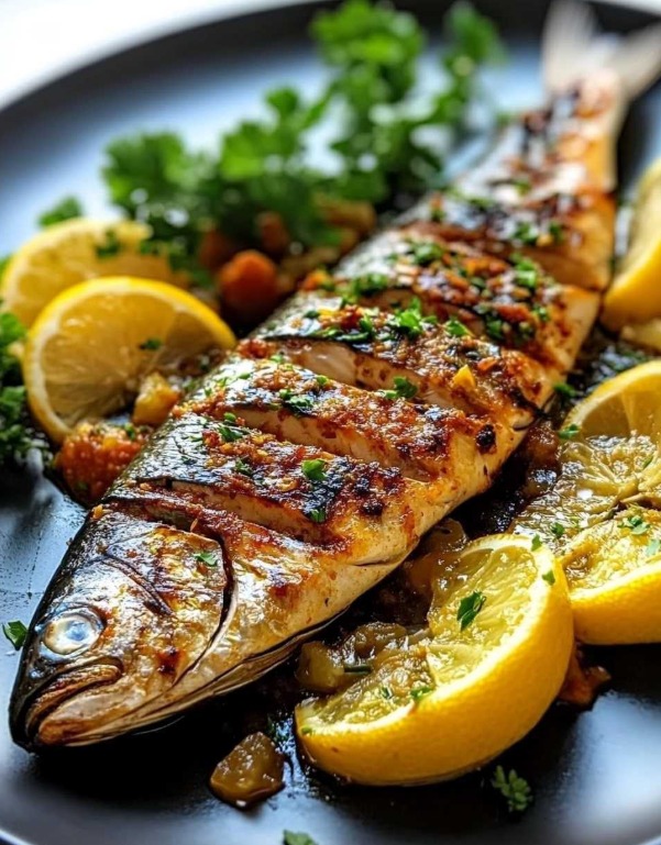Pieczona makrela z harissą i konserwowanymi cytrynami to aromatyczne, wyraziste danie inspirowane kuchnią śródziemnomorską i północnoafrykańską. Łączy w sobie intensywną, lekko pikantną nutę pasty harissa z cytrusową świeżością konserwowanych cytryn oraz naturalną soczystością makreli.
