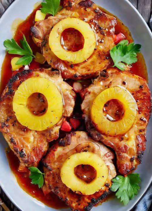 „Naprawdę pyszne! Mama kazała mi zrobić je jeszcze raz i nie zawaham się!” – tak w skrócie można podsumować to danie. Pieczone kotlety wieprzowe z ananasem to przepis, który łączy w sobie prostotę wykonania z niezwykle efektownym smakiem. Soczyste mięso, karmelizowany ananas i aromatyczna glazura tworzą połączenie, które zachwyca już od pierwszego kęsa.