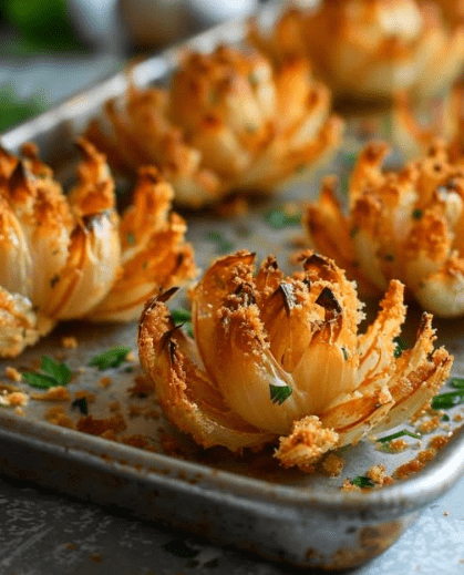 Pieczone kwiaty cebuli zachwycają nie tylko smakiem, lecz także formą. Rozchylone płatki tworzą efektowny kształt kwiatu, który od razu przyciąga wzrok i sprawia, że danie staje się centralnym punktem stołu. To przystawka idealna na niezobowiązujące spotkania, wieczory gier, rodzinne kolacje czy jako oryginalny dodatek do większego posiłku.