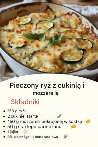 Pieczony ryż z cukinią i mozzarellą to proste, ale pyszne danie, które łączy w sobie delikatność ryżu, świeżość cukinii i kremową mozzarellę. Jest to idealny wybór na obiad lub kolację, szczególnie dla osób szukających lekkich, ale sycących potraw. Dzięki pieczeniu, ryż nabiera niepowtarzalnej konsystencji, a ser rozpuszcza się, tworząc wyjątkową, kremową teksturę. Przepis jest szybki i łatwy do wykonania, a efekty na pewno zadowolą każdego smakosza.