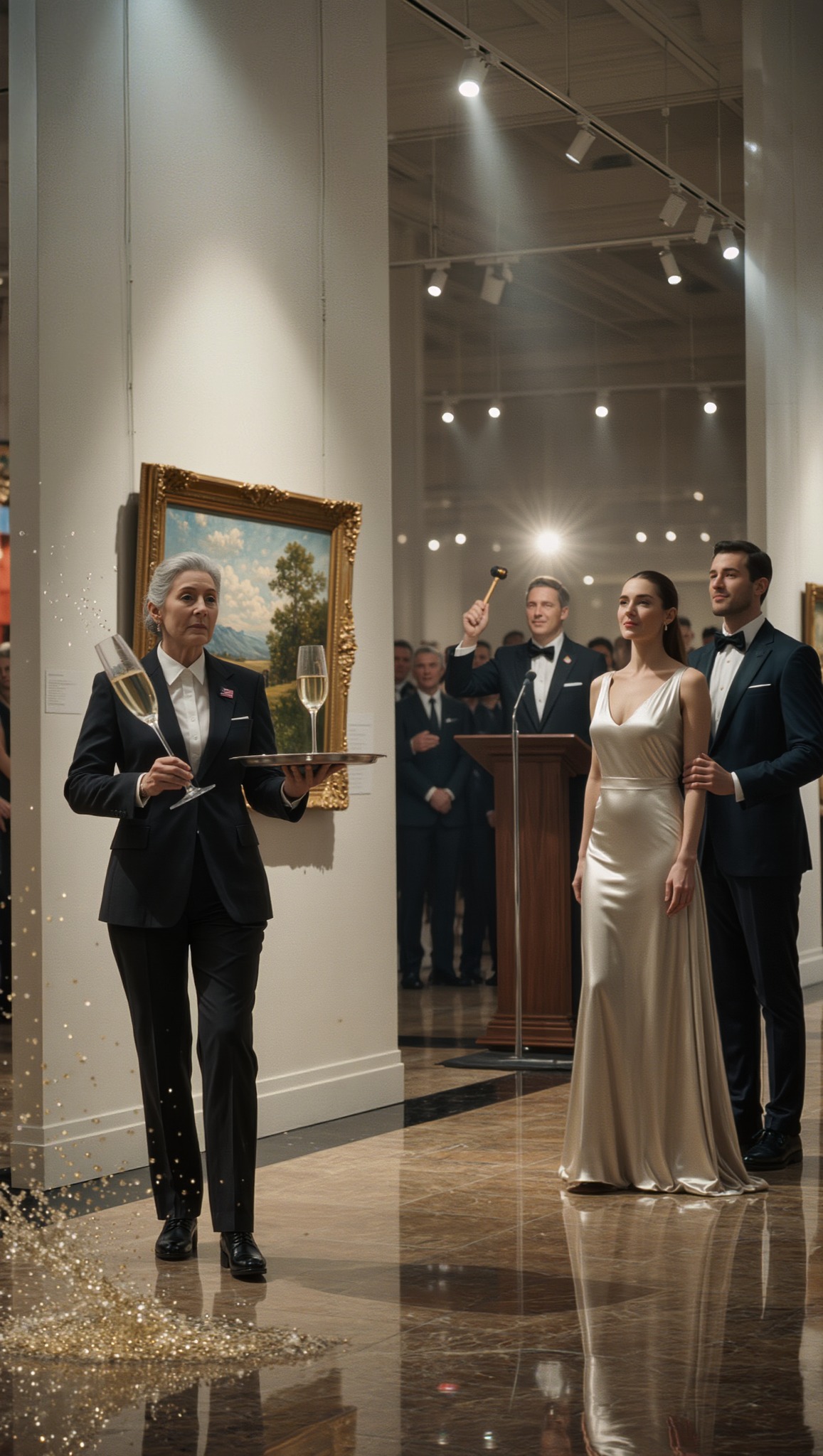 Po latach zmagań z zawodem artysty, podjąłem pracę jako serwujący szampana w ekskluzywnej galerii. Podczas aukcji zamarłem.