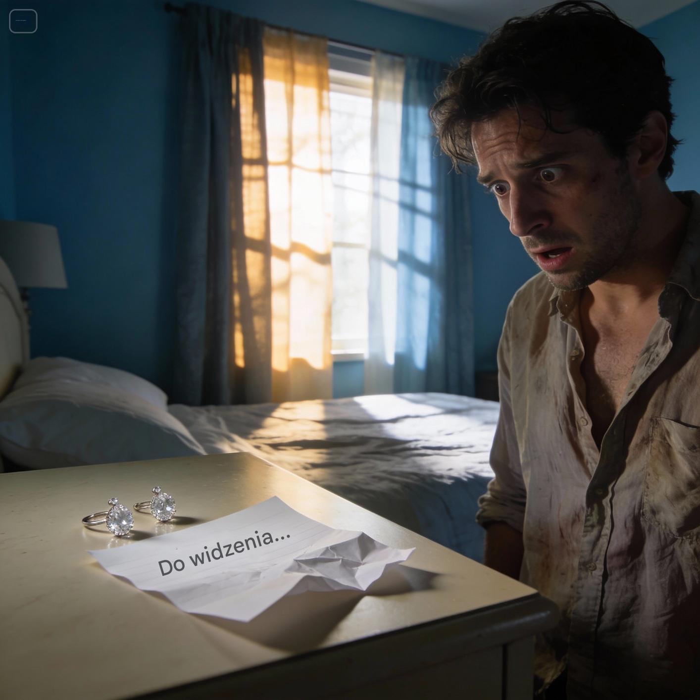 Szuflada, w której trzymała swoje miękkie koszule ciążowe, była na wpół otwarta. Brakowało każdego starannie złożonego kawałka. Ale to cisza go przeszyła, ciężka, oskarżycielska, sprawiała, że ściany wydawały się zbyt ciasne, a powietrze zbyt rozrzedzone. Przy oknie zauważył szczegół, który przyprawił go o mdłości. Jej harmonogram wizyt prenatalnych, zazwyczaj przypięty do tablicy korkowej, leżał podarty na pół na podłodze, a zdjęcie USG, maleńki zarys ich dziecka, zostało zrobione. Przełknął ślinę.