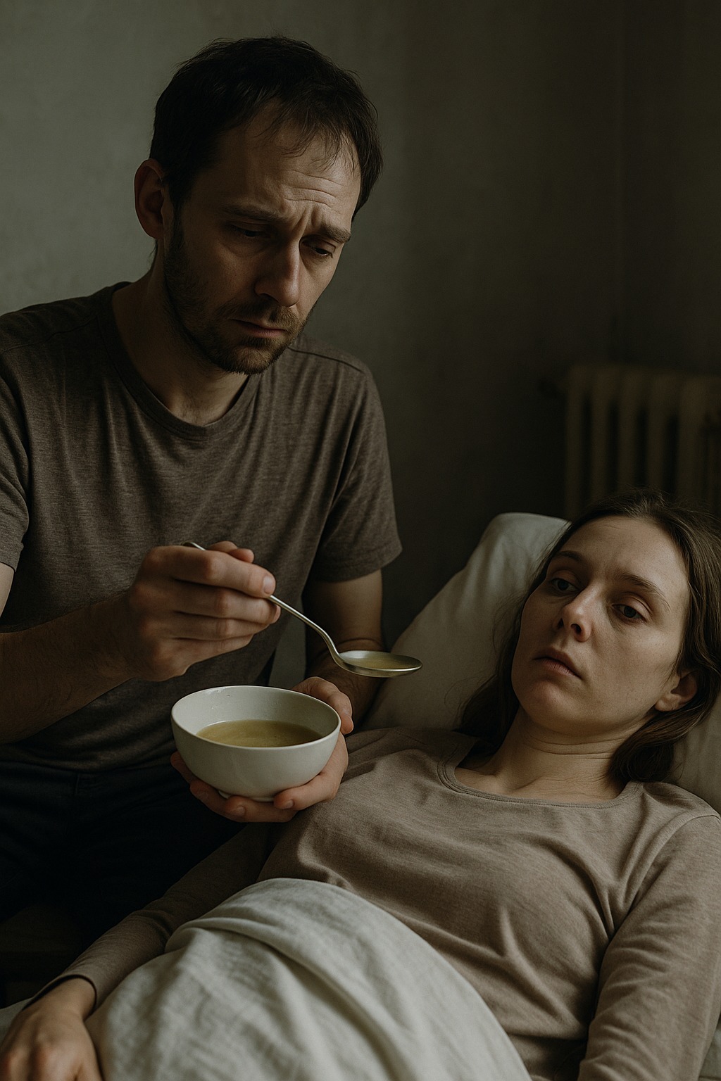 Przez pięć długich lat spędzałem więcej czasu przy szpitalnym łóżku mojej żony niż przy własnym. Karmiłem ją łyżeczką, zmieniałem jej opatrunki, ocierałem z jej ciała każdą kroplę potu. Ludzie nazywali mnie głupim, ale wierzyłem w świętą więź małżeńską. Aż pewnego popołudnia – zapomniałem torebki i wróciłem wcześniej niż zwykle. W chwili, gdy otworzyłem drzwi do naszego pokoju… zamarłem. Świat, który chroniłem latami, rozpadł się w jednej chwili.