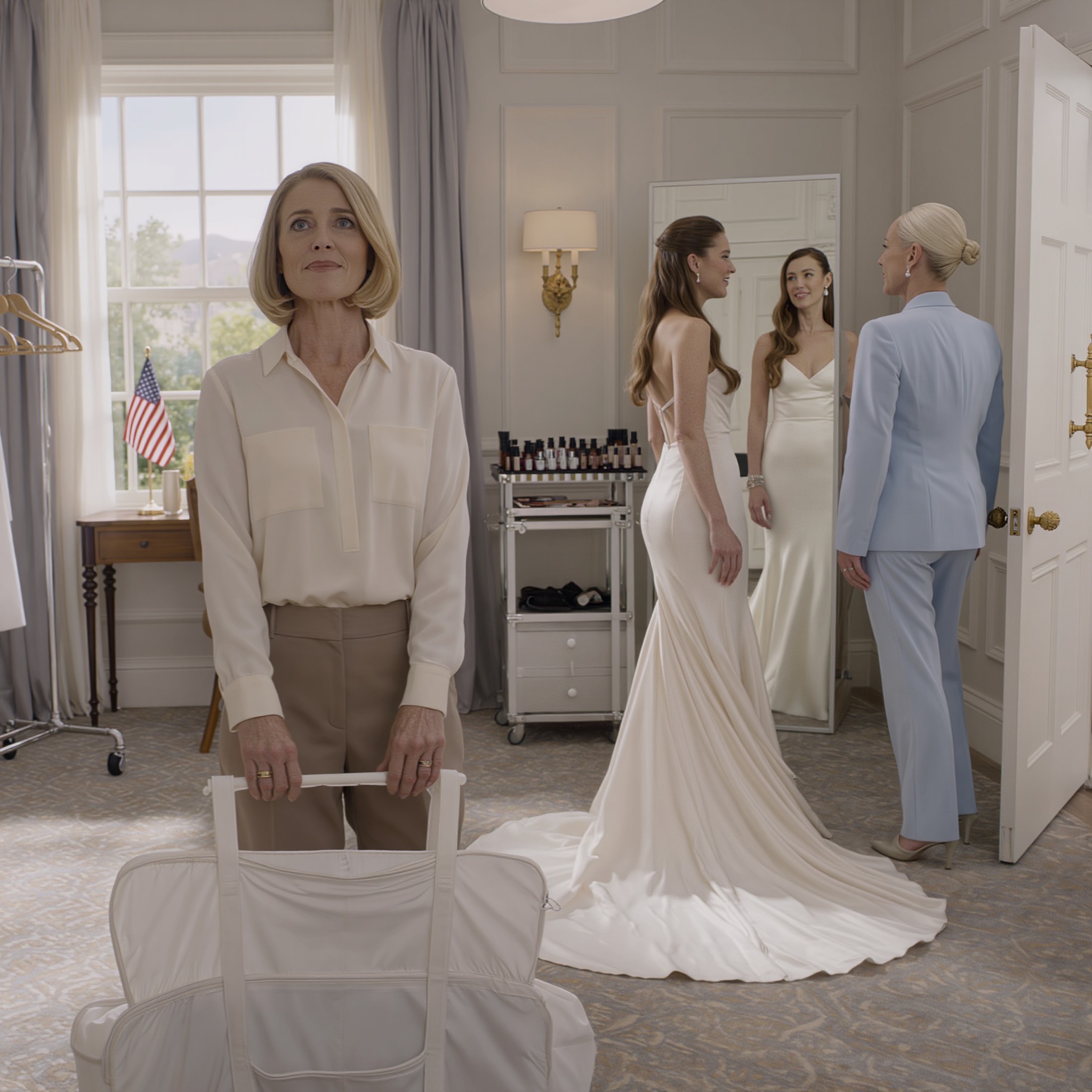 chwili, gdy moja córka wślizgnie się w jedwab i koronkę, uszyte rękami jej matki. „Przyniosłam suknię” – powiedziałam