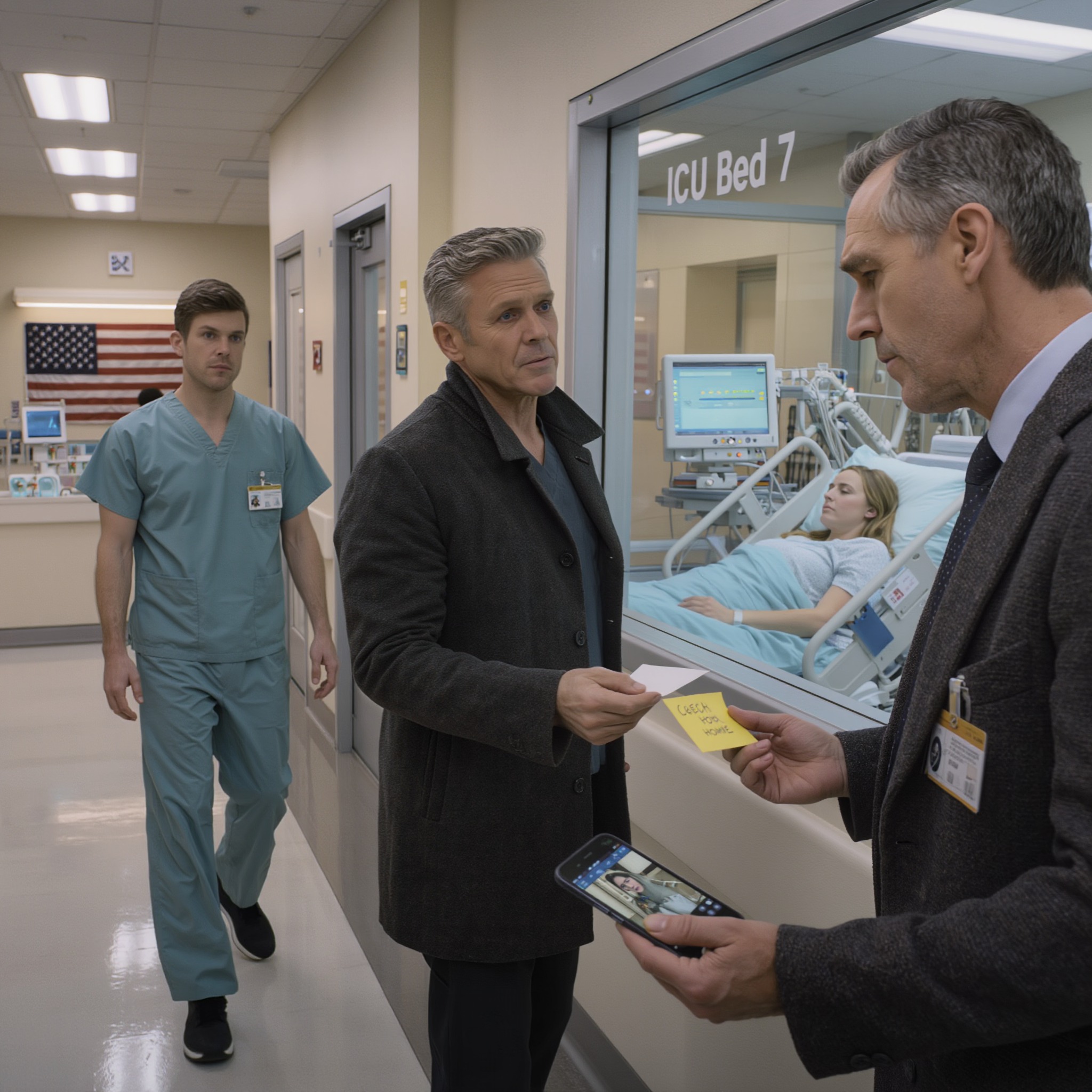 Doktor Chen nie spojrzał na mnie bezpośrednio. Udawał, że sprawdza tablet, ale przechodząc, wcisnął mi w dłoń coś małego i twardego. Jego ręka drżała. Spojrzałem w dół – złożona karteczka samoprzylepna.