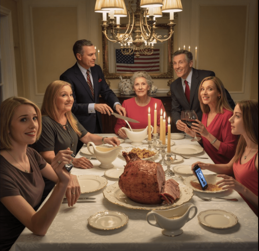 Uśmiechy bledną. Ojciec blednie. Macocha Linda upuszcza kieliszek wina. Przybrana siostra Emma rzuca telefon na talerz.