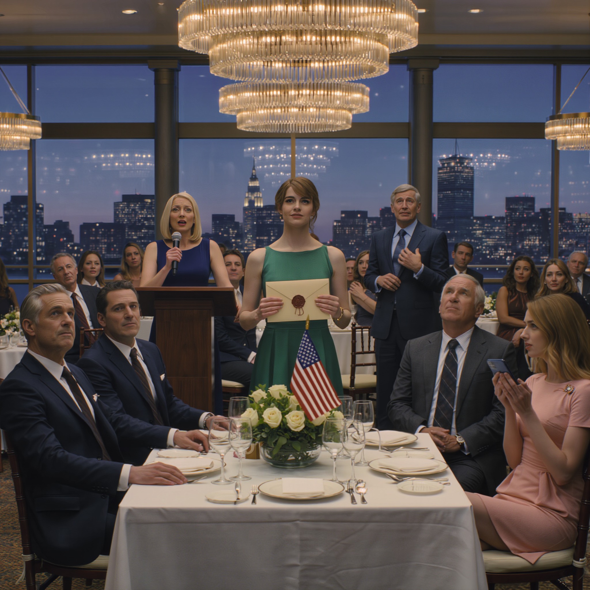 Patricia Anderson – idealna fryzura, idealny uśmiech, jedwabna sukienka, która szeptała przy każdym ruchu – stuknęła raz w mikrofon. Sala posłuchała jej. Mój ojciec, Richard, siedział obok niej z serwetką złożoną zbyt starannie, z oczami wbitymi w stół, jakby kontakt wzrokowy mógł go kosztować utratę.