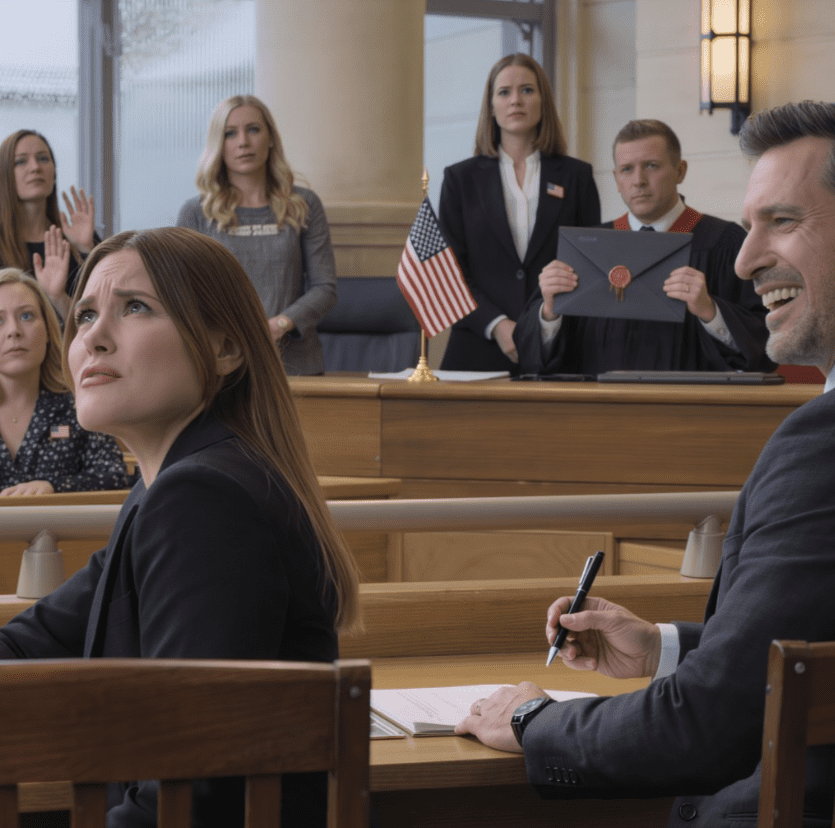 Końcówka długopisu lśniła w świetle jarzeniówek sali sądowej, a śmiech Caleba odbijał się echem – zbyt głośny jak na pomieszczenie pachnące pastą do podłóg i zwietrzałą kawą. Na skraju biurka urzędnika maleńki magnes z amerykańską flagą, zapomniana pamiątka ze sklepiku portowego, drgał przy każdym podmuchu wentylacji. Z korytarza dobiegała chrapliwa melodia Sinatry, puszczona przez stare radio, zupełnie niepasująca do klinicznej powagi miejsca.