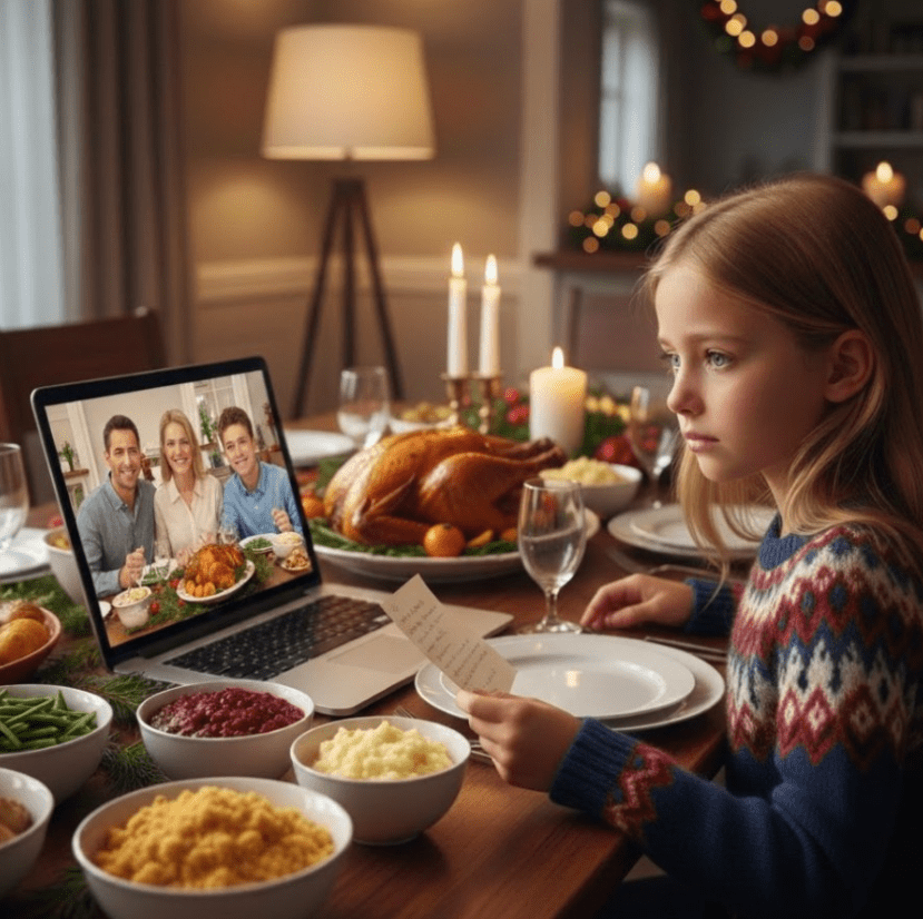 „Twoja siostra nadaje na żywo: «Zobacz, jak nasza siostra płacze sama w Święto Dziękczynienia!»”
