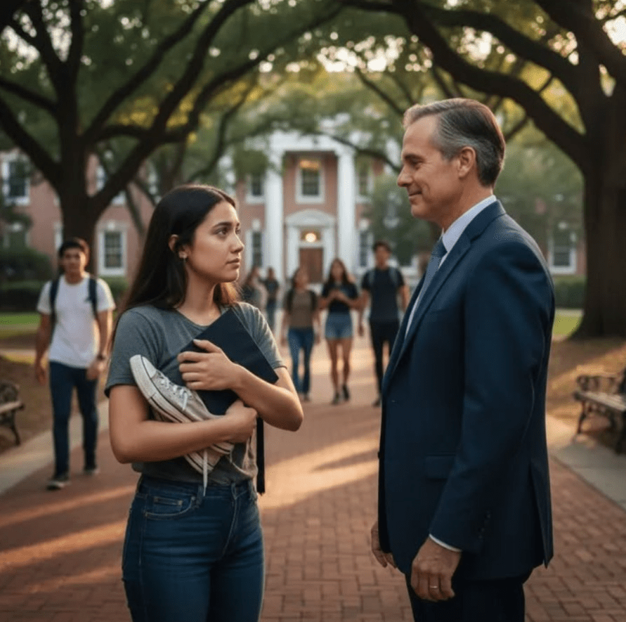 Zawahała się, spoglądając na jego wypolerowane skórzane buty i subtelny błysk drogiego zegarka na nadgarstku. Nie wiedziała, kim jest, ale coś w jego spokojnym, pewnym siebie zachowaniu sprawiło, że w jej żołądku pojawił się ucisk — mieszanka podziwu i lęku. „Czy mogę pożyczyć twoje buty na zakończenie roku?” — powtórzyła, niemal się jąkając.