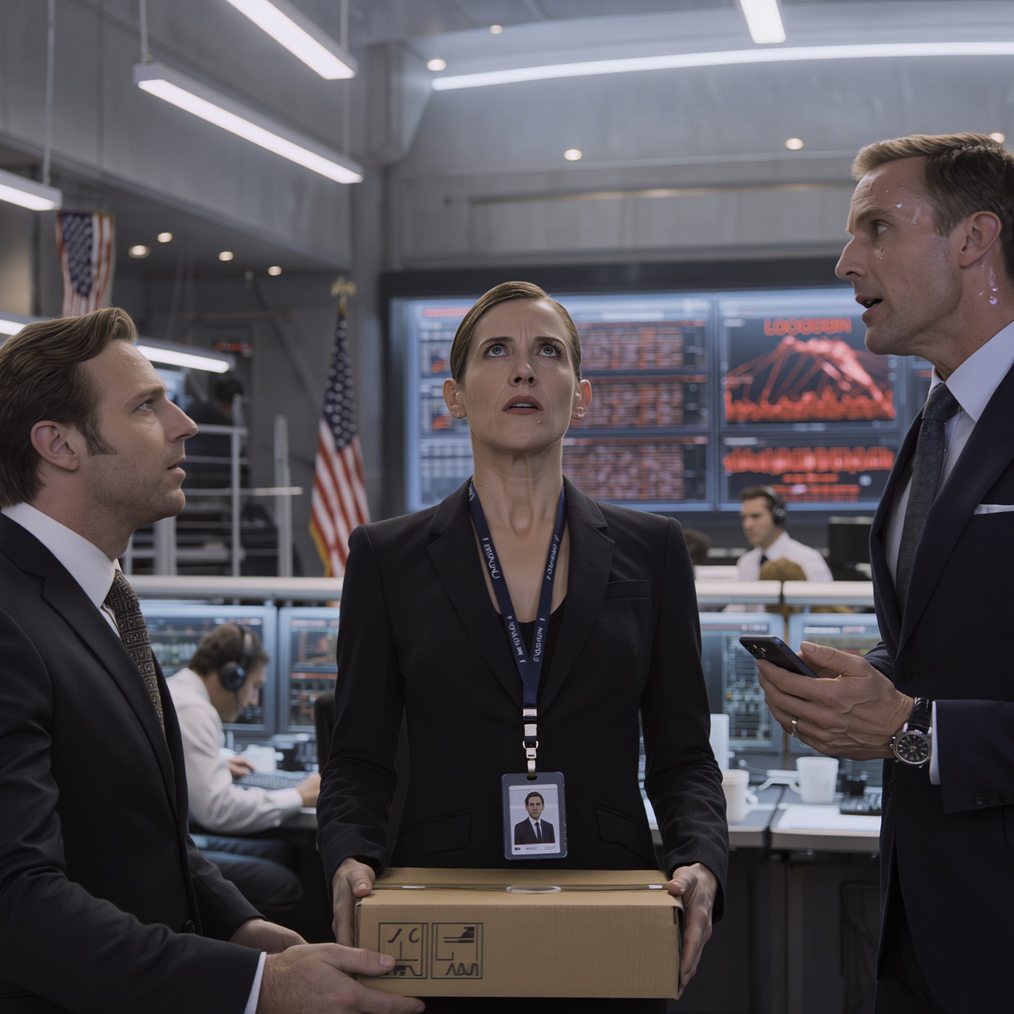 Przy stanowisku ochrony młoda kobieta wstała zbyt gwałtownie, o mało nie wywracając kawy. Jej identyfikator wskazywał na to, że jest Victorią – zatrudnioną w ciągu ostatnich sześciu miesięcy, sądząc po kolorze smyczki.