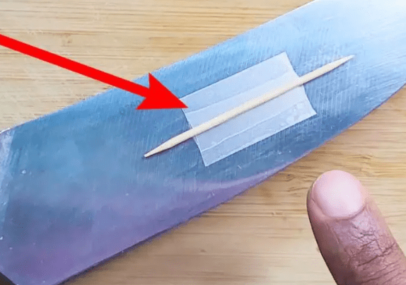 Rozwiązanie jest zaskakująco proste i nie wymaga żadnych specjalistycznych akcesoriów. Wystarczy zwykła wykałaczka oraz kawałek taśmy klejącej. Umieść wykałaczkę wzdłuż boku noża, najlepiej w pobliżu krawędzi ostrza, i delikatnie przymocuj ją taśmą. Dzięki temu między ostrzem a krojonym produktem powstaje niewielka przerwa, która ogranicza kontakt powierzchni i zapobiega przywieraniu jedzenia.