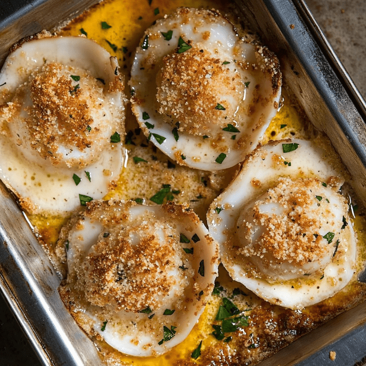 Przegrzebki zapiekane z masłem czosnkowym