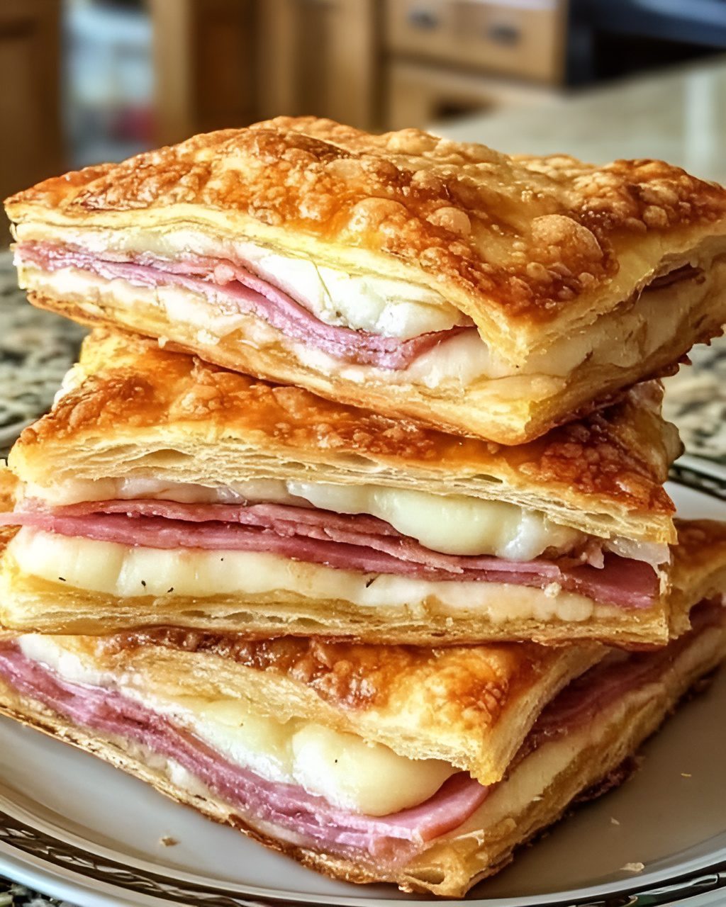 Ten przepis łączy klasyczne smaki croque monsieur (szynka i ser) z chrupiącym, maślanym ciastem francuskim. To pyszny i elegancki dodatek do tradycyjnej kanapki, idealny na brunch, lunch lub jako luksusowa przekąska. Dzięki zastosowaniu ciasta francuskiego, danie zyskuje na wyjątkowości i chrupkości, a aromatyczne nadzienie sprawia, że całość smakuje wyśmienicie.