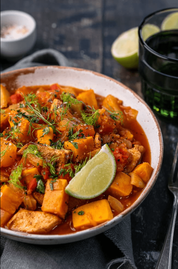 Stoofschotel met pompoen en kip to danie idealne na chłodniejsze dni, kiedy marzymy o ciepłym, aromatycznym posiłku, który nas rozgrzeje. To idealny przepis na początek jesieni, pełen smaków dyni, kurczaka, batatów i fenkuła, wzbogacony o wyraziste przyprawy. Pomyśl o duszącej potrawce, która wolno gotuje się w garnku, wypełniając cały dom zapachami przypraw, warzyw i ciepłych aromatów. To danie, które nie tylko smakuje wyśmienicie, ale również rozgrzewa ciało w chłodne dni!