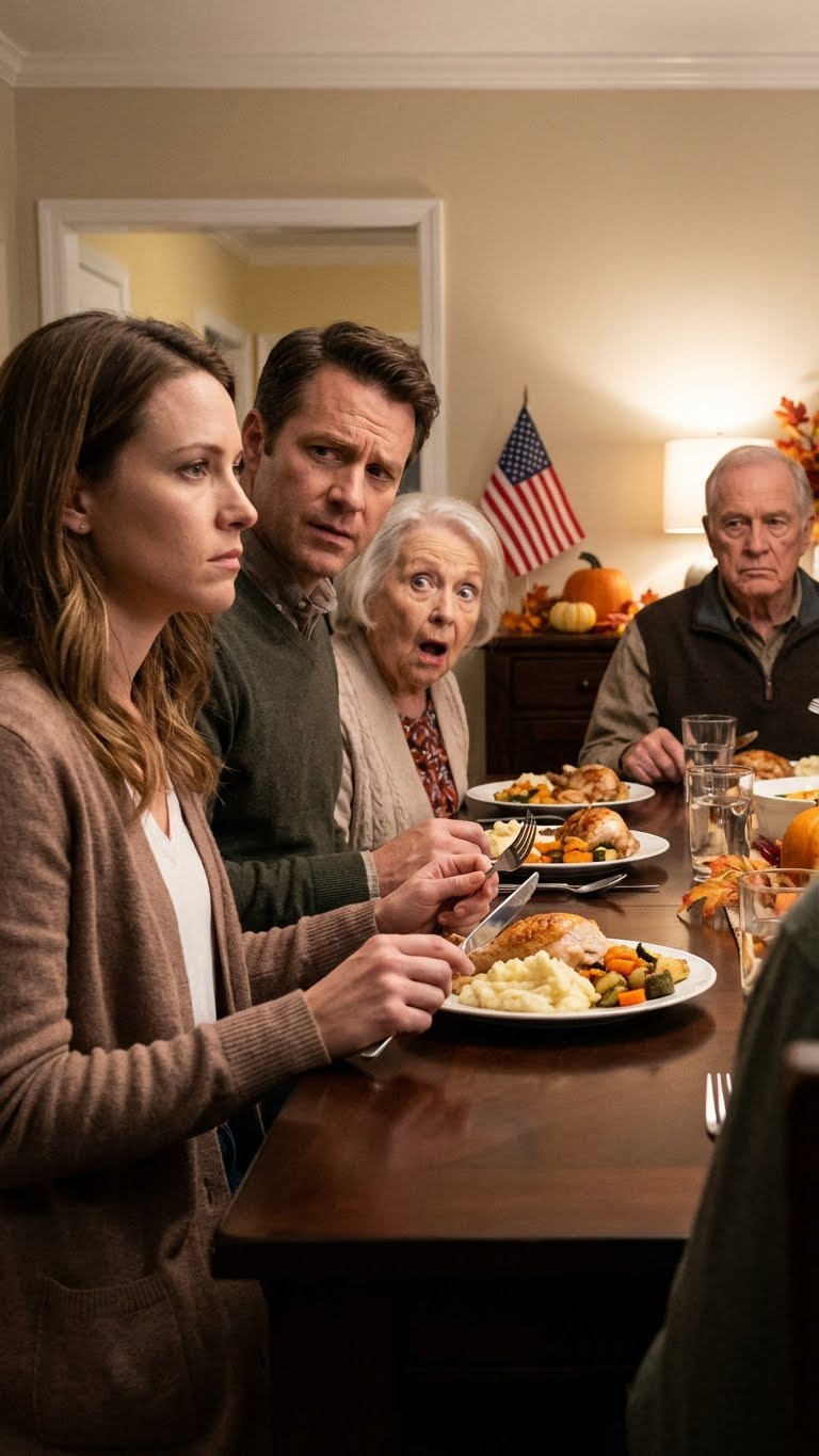 Przy stole podczas Święta Dziękczynienia mój mąż spojrzał na mnie mimochodem i powiedział: