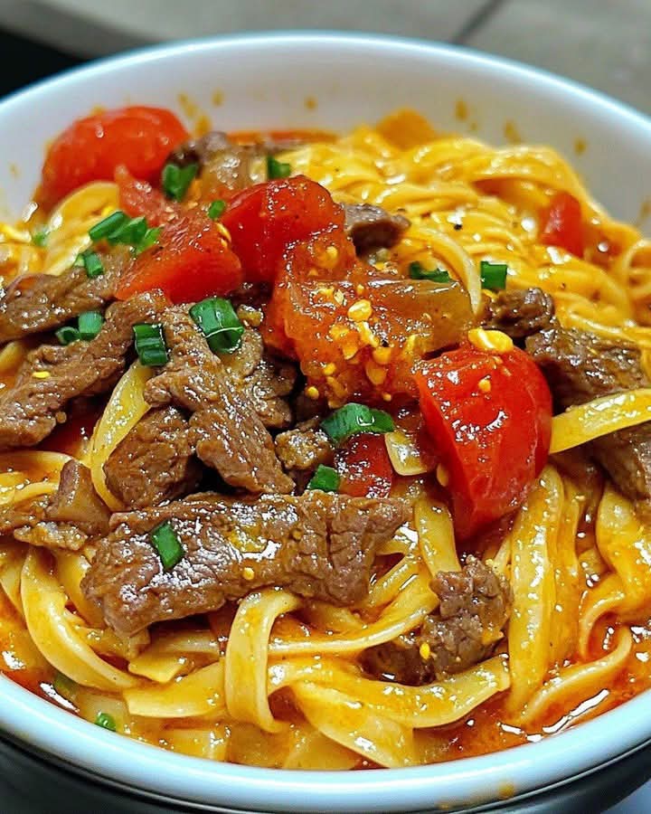 Ta pyszna, wołowino-pomidorowa rozkosz to sycące i aromatyczne danie z delikatną wołowiną, pikantnym sosem pomidorowym i idealnie ugotowanym makaronem. To klasyka kuchni comfort food, która łączy bogactwo smaku wołowiny z aromatem pomidorów, tworząc posiłek, który pokocha Twoja rodzina.