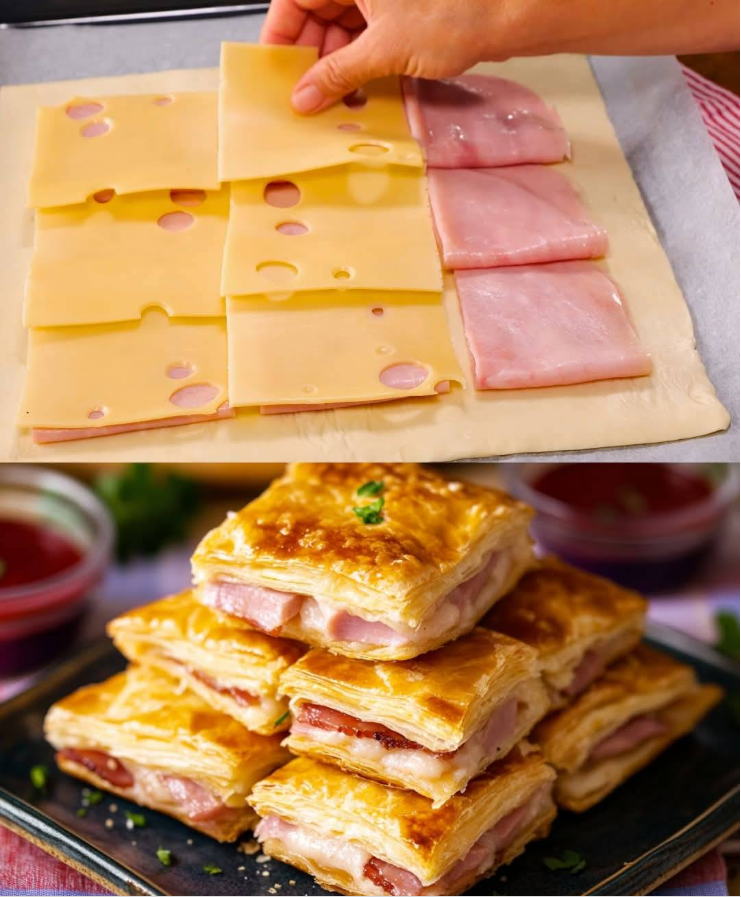 Te kieszonki z ciasta francuskiego z szynką i serem są chrupiące, złociste i wypełnione ciągnącym się serem oraz wyśmienitą szynką. To szybka i pyszna przekąska, przystawka, a nawet lekkie danie główne. Idealne na zapracowane dni lub na spotkania z gośćmi!