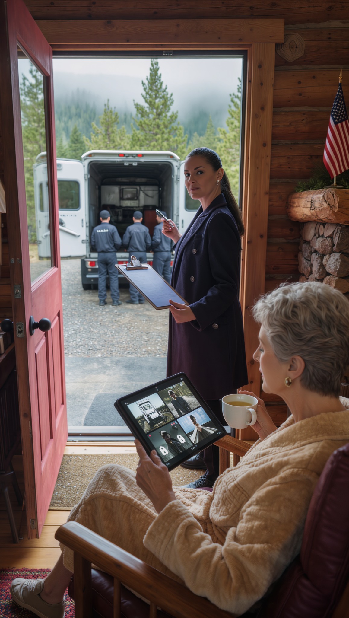 Relaksowałem się w mojej górskiej chacie, gdy o 5 rano włączył się alarm. Strażnik zawołał zdenerwowany. „Pani Harland… pani synowa przyjechała z przeprowadzką. Mówi, że musi pani wyjechać. Mówi, że teraz to miejsce należy do niej”. Wziąłem powolny łyk herbaty i uśmiechnąłem się. „Wpuść ją” – powiedziałem. „Zaraz się dowie, co wczoraj zrobiłem”.