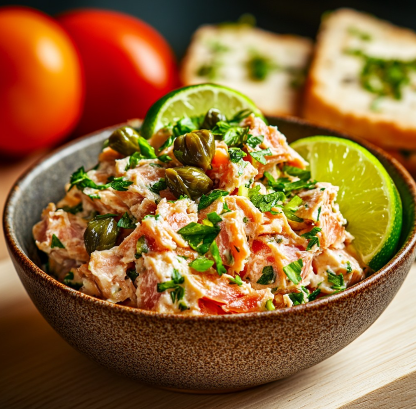 Rillettes z łososia z limonką i kaparami to elegancka, a jednocześnie bardzo prosta w przygotowaniu pasta, która doskonale sprawdzi się jako przystawka, element brunchu lub lekka kolacja. Jej kremowa konsystencja, przełamana wyraźnymi kawałkami ryby, łączy się z orzeźwiającą kwasowością limonki i charakterystyczną słonością kaparów. To danie, które nie wymaga długiej obróbki termicznej ani skomplikowanych technik, a mimo to prezentuje się niezwykle apetycznie.