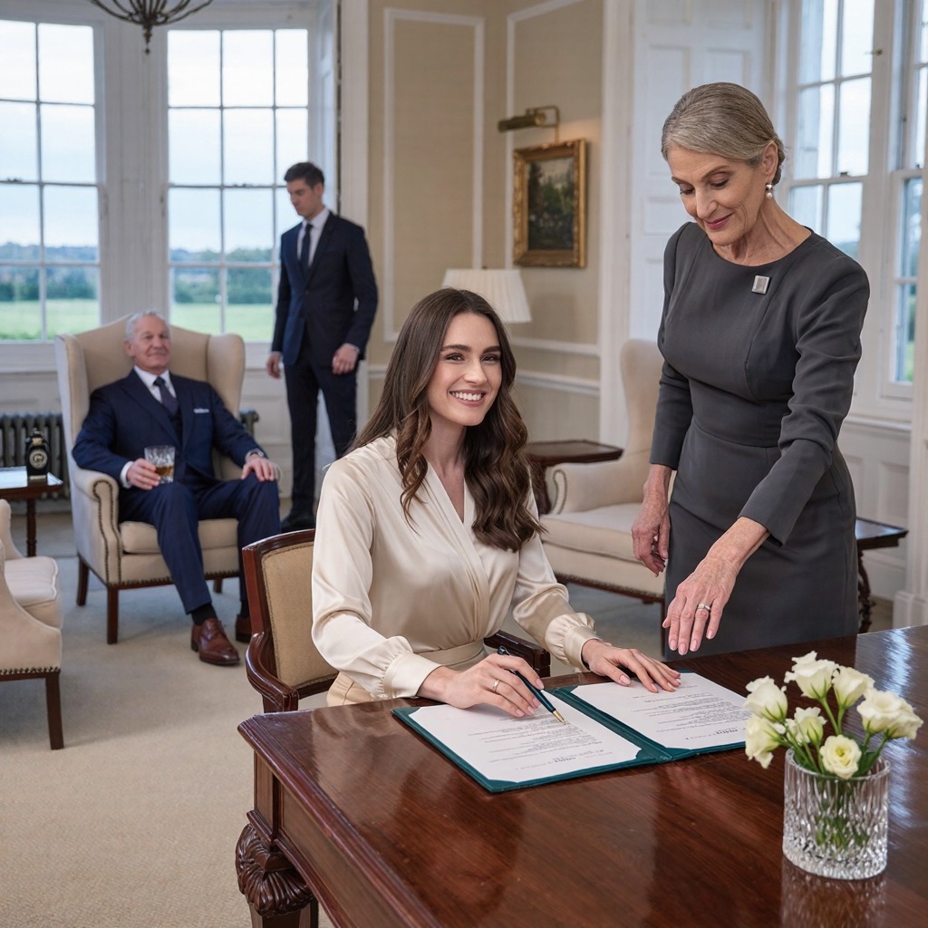 „Podpisz to” – powiedziała Ursula Wellington głosem gładkim jak miód, z oczami zimnymi jak kamienie rzeczne. Jej idealnie wypielęgnowany paznokieć stukał wzdłuż linii podpisu – cierpliwie, nieustępliwie. „Albo ślub odwołany”.