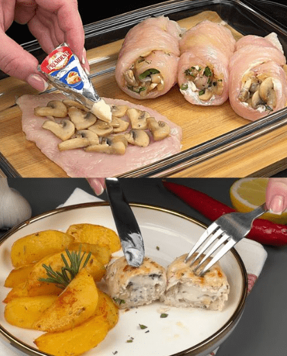 Roladka z kurczaka faszerowana aromatycznym nadzieniem to danie, które doskonale łączy prostotę składników z efektownym wyglądem i głębokim smakiem. Soczyste filety z kurczaka, wypełnione kremowym serem, pieczarkami i świeżymi ziołami, tworzą harmonijną całość z chrupiącymi, złocistymi ziemniakami w ziołowej panierce. To propozycja idealna zarówno na rodzinny obiad, jak i na bardziej uroczysty posiłek.