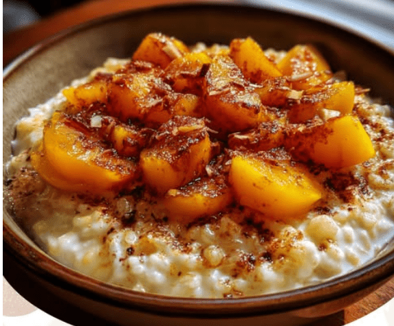 Ryż na mleku z brzoskwiniami to klasyk, który przywodzi na myśl domowe, ciepłe smaki. Kremowy, delikatnie słodki, pachnący wanilią i świeżo pokrojonymi owocami. Idealny na śniadanie, podwieczorek lub lekki deser. Podany na ciepło otula jak miękki koc, a schłodzony smakuje jak lekki, mleczny pudding.