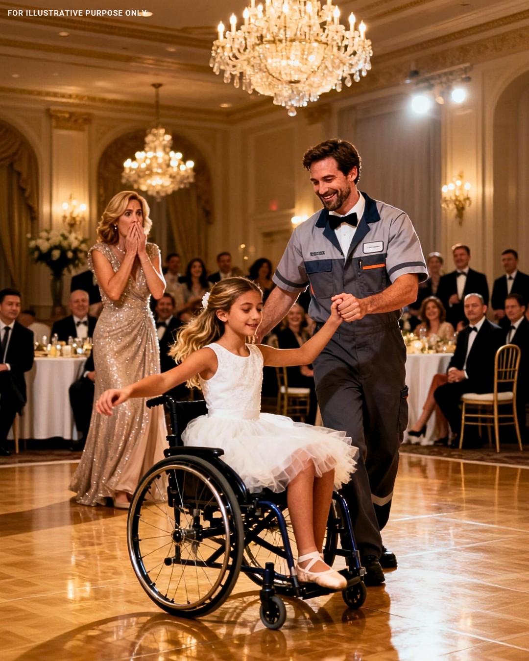 Zawahał się, patrząc na swój poplamiony mundur, mop, śpiącego syna – a potem odłożył mop. Wziął ją za rękę i delikatnie przesunął krzesło na środek podłogi.