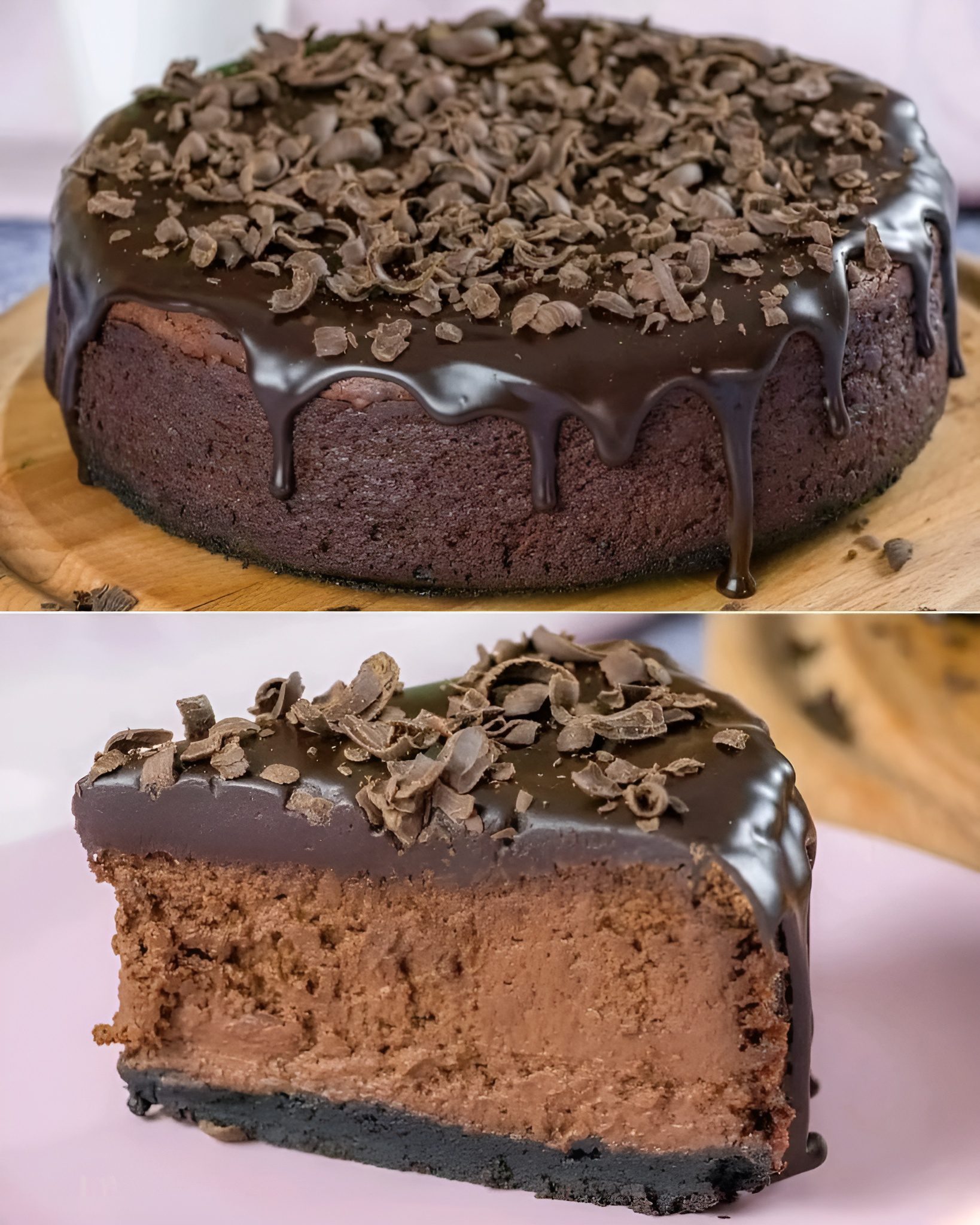 Ten sernik jest nie tylko efektowny, ale również wyjątkowo prosty w przygotowaniu. Nie wymaga pieczenia ani skomplikowanych technik cukierniczych, a mimo to prezentuje się jak deser z najlepszej kawiarni. Połączenie kremowej masy serowej, głębokiej czekoladowej nuty i delikatnej ganache sprawia, że trudno poprzestać na jednym kawałku.