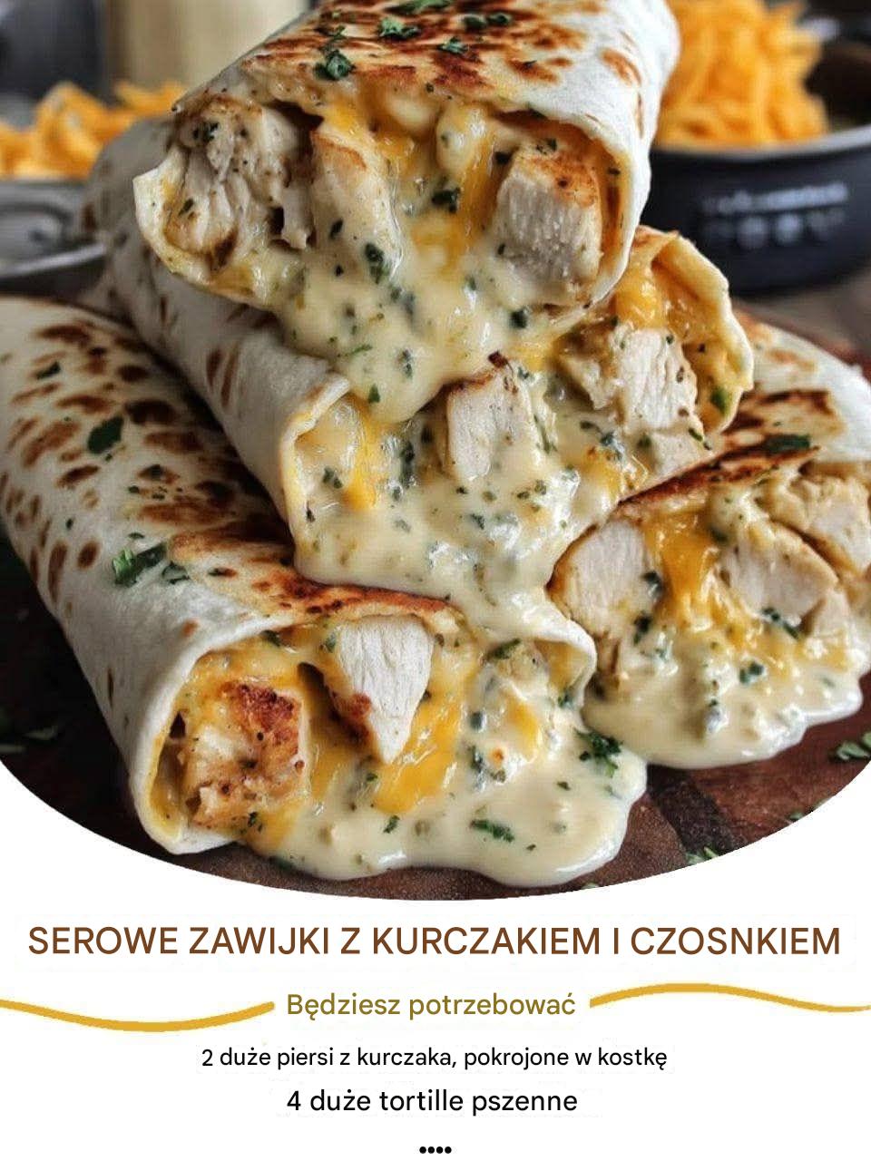 Serowe wrapy z kurczakiem i czosnkiem to klasyczny przykład comfort food, który łączy w sobie wszystko, co najlepsze w domowej kuchni. Złociste, lekko chrupiące tortille skrywają w środku soczystego, aromatycznego kurczaka oraz ser, który po podgrzaniu staje się cudownie ciągnący i kremowy. To danie, które daje natychmiastowe poczucie sytości i przyjemności, a jednocześnie nie wymaga długich przygotowań.