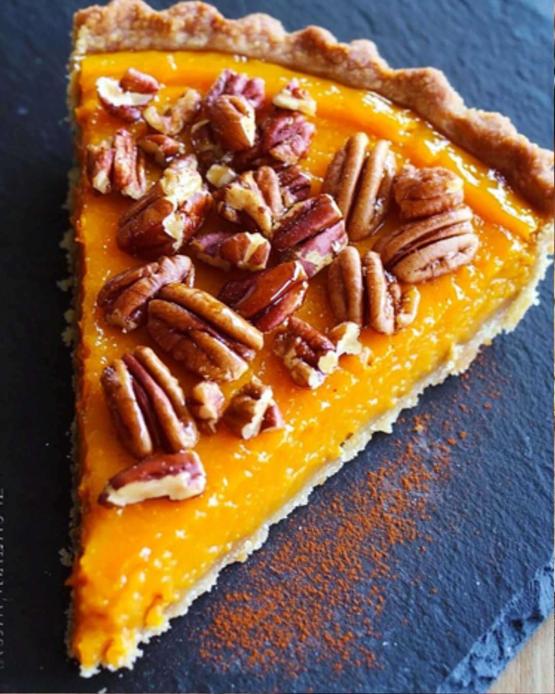 Delikatne, kruche ciasto stanowi bazę dla kremowego, aksamitnego nadzienia dyniowego, które rozpływa się w ustach. Całość dopełniają orzechy pekan w złocistym karmelu, nadające tarcie wyrazistego charakteru i kontrastu tekstur. Choć deser wygląda efektownie, jego przygotowanie jest stosunkowo proste i nie wymaga zaawansowanych umiejętności cukierniczych.