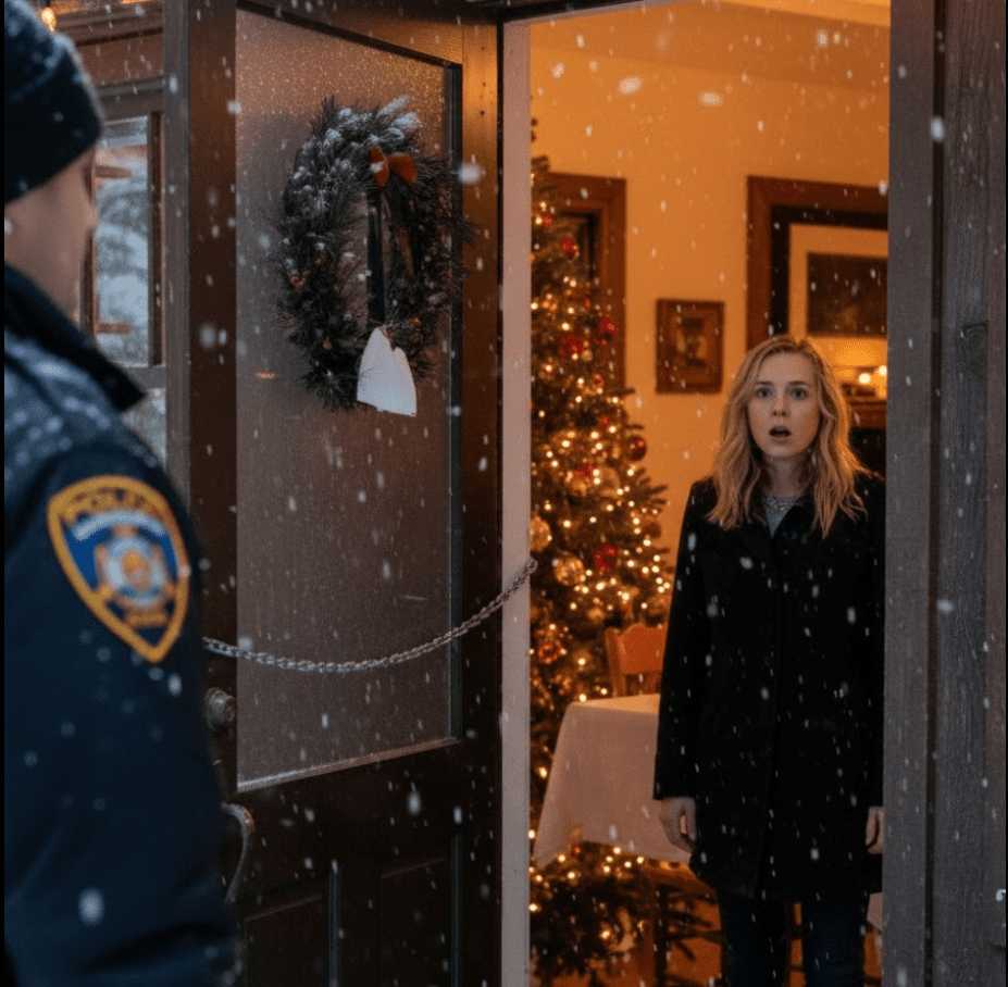 „Jest” – powiedział starszy funkcjonariusz spokojnym, pozbawionym ciepła głosem. „Właścicielka tego domu, pani Lucy Carter, złożyła doniesienie. Pan i wszyscy inni w środku wtargnęli na jej posesję. Zamknęliście ją przed jej własnym domem. Proszę natychmiast wyjść na zewnątrz, dopóki nie zakończymy śledztwa”.