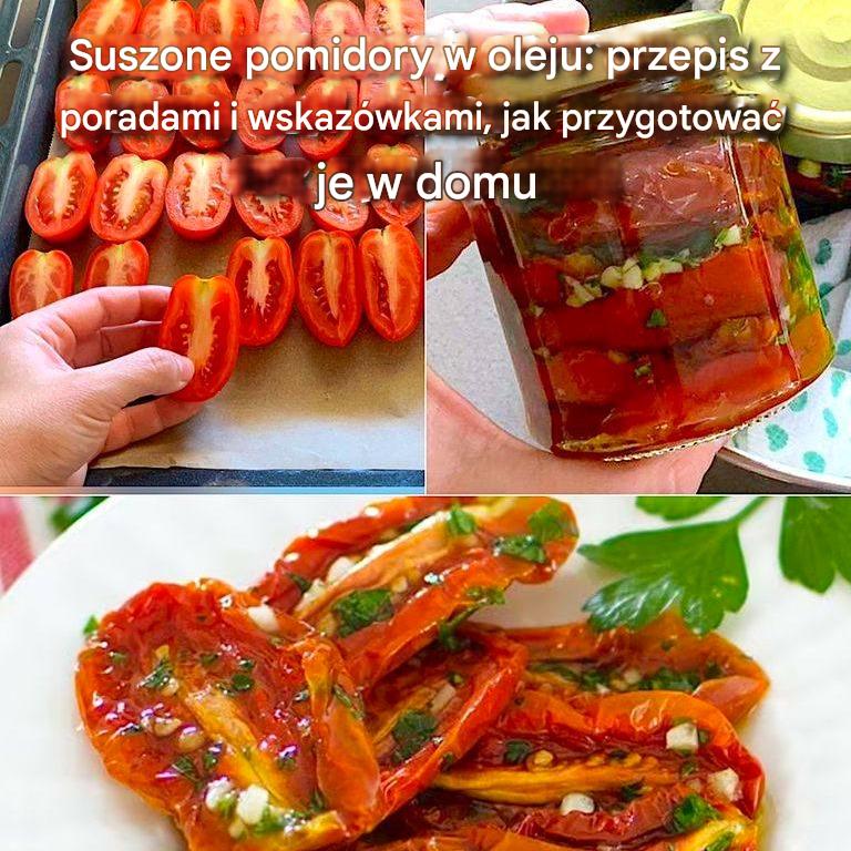 : Najpierw dokładnie umyj i osusz pomidory. Następnie przekrój je wzdłuż na pół i ułóż przeciętą stroną do góry na blasze do pieczenia wyłożonej papierem pergaminowym. Skrop oliwą z oliwek extra virgin, posyp szczyptą soli i piecz w piekarniku nagrzanym do 120°C (250°F) przez około 10 godzin.