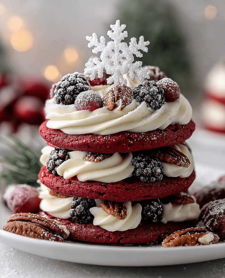 🎄 Wypiecz święta w każdym kęsie dzięki tym magicznym, warstwowym słodkościom. Te whoopie pies w stylu Red Velvet wyglądają jak jadalna kartka świąteczna — są miękkie, intensywnie czerwone, kremowe i pełne zimowego uroku.