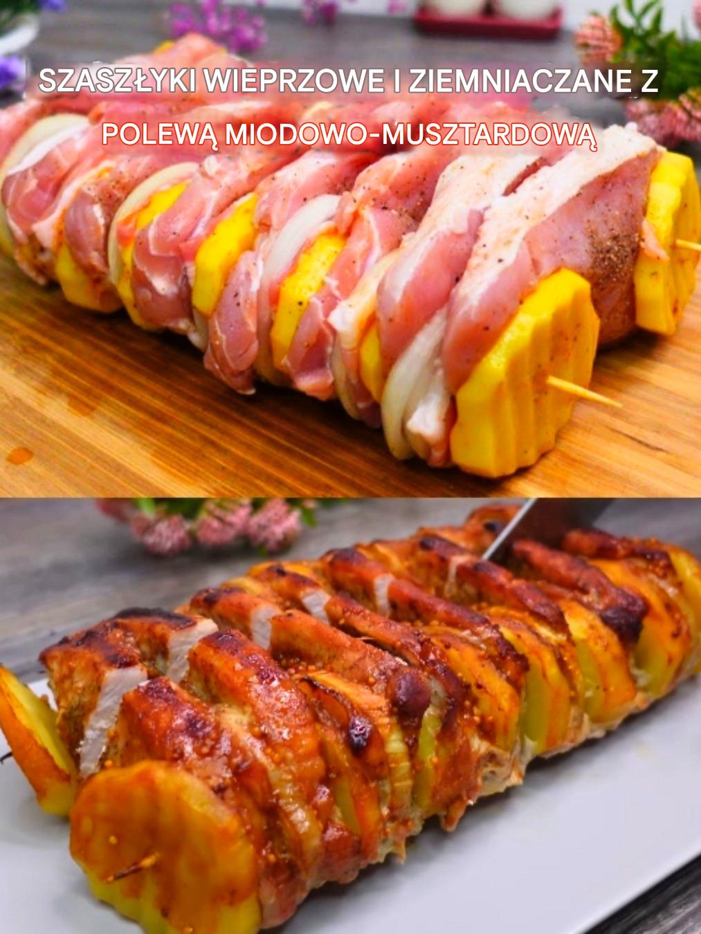 Szaszłyki wieprzowo-ziemniaczane z glazurą miodowo-musztardową to sycące, aromatyczne danie, które doskonale sprawdzi się zarówno na rodzinny obiad, jak i na spotkanie w gronie znajomych. Połączenie soczystej wieprzowiny, miękkich ziemniaków oraz słodko-pikantnej glazury tworzy harmonijną całość, która trafia w gusta wielu osób.