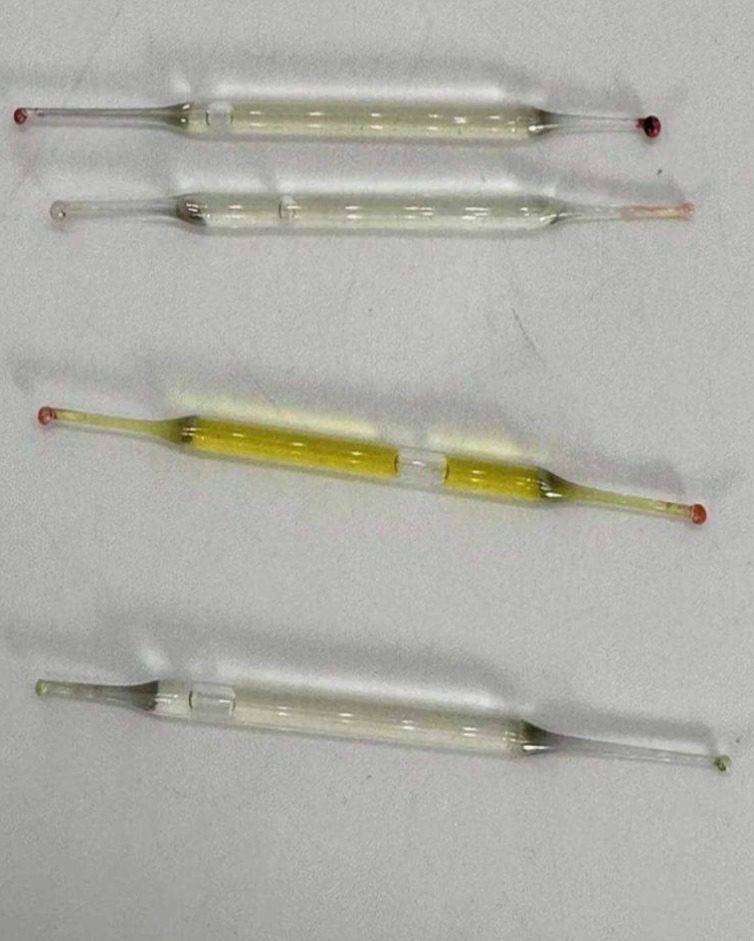 Odnalezione rurki są smukłe, cylindryczne i niewielkie, zazwyczaj o długości około 5 centymetrów. Wykonane są z cienkiego szkła, często całkowicie przezroczystego, co pozwala bez trudu dostrzec zawarty w środku płyn. Obie końcówki rurek są szczelnie zamknięte, co sugeruje, że ich zawartość miała być chroniona przed dostępem powietrza i odparowaniem.