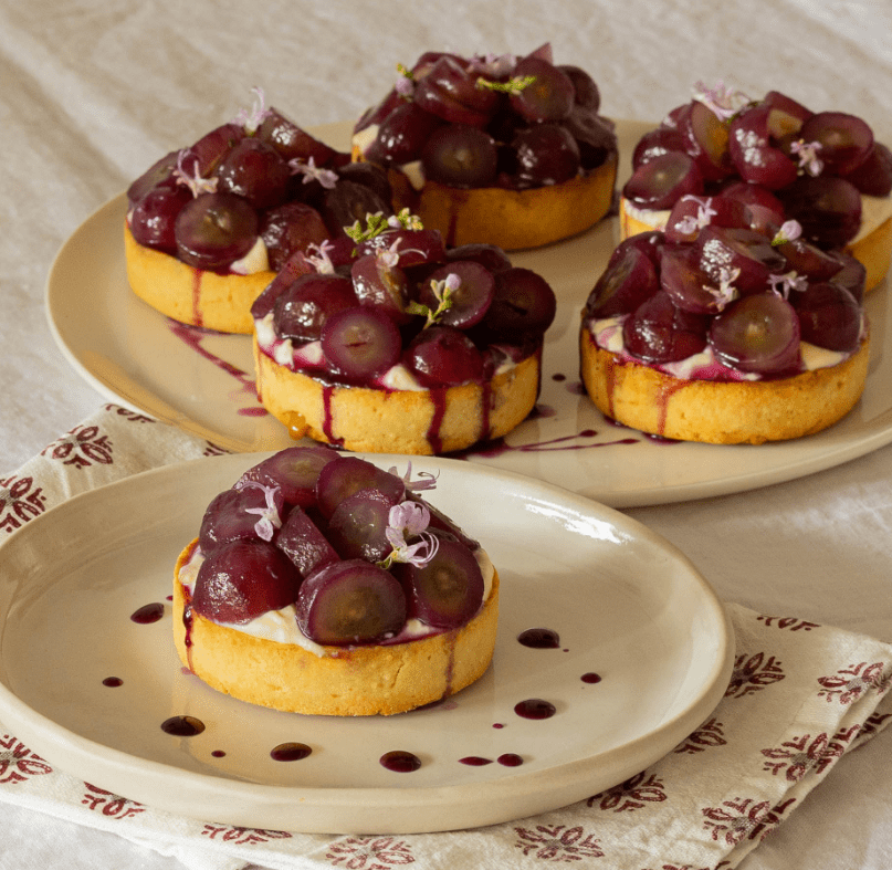 Występują w wielu odmianach, kolorach i smakach, są soczyste, słodkie i aromatyczne. Nie służą wyłącznie do produkcji wina (choć oczywiście w tej roli są niezastąpione), lecz mają ogromny potencjał kulinarny. Można z nich przygotować eleganckie desery, ale też dania o zaskakująco wytrawnym charakterze. Ta efektowna tarta jest hołdem złożonym winogronom – owocom często niedocenianym w cukiernictwie.