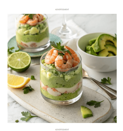 Prezentacja: Verrine z awokado i krewetkami to pyszna francuska przystawka, która łączy kremową głębię awokado z delikatnym smakiem krewetek, tworząc idealną równowagę smaków. Podawana w eleganckich kieliszkach, idealnie nadaje się na uroczyste spotkanie lub jako elegancka przystawka. Warstwowa prezentacja doda każdemu stołowi nuty wyrafinowania, a świeżość składników zapewni orzeźwiające doznania z każdym kęsem.